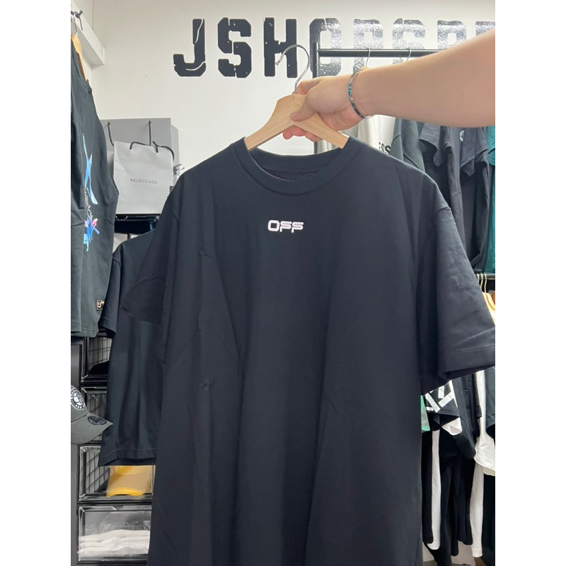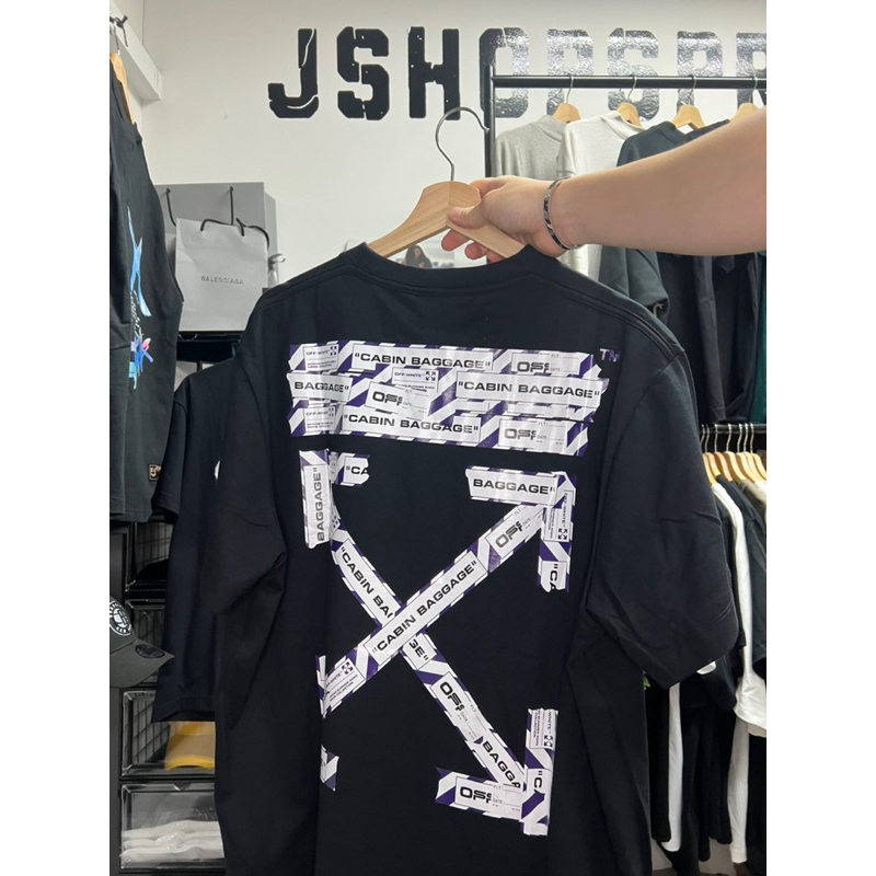 [JSHOPSPREE] Off White Airport Tape and Acrylic Arrow Tee Black