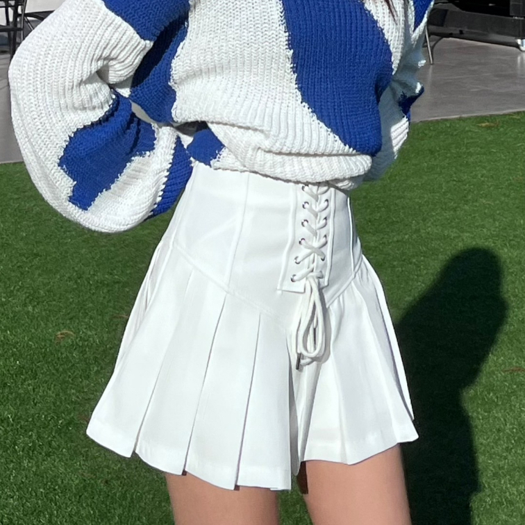 【 栗子の商店 】韓版設計感氣質裙 內有安全褲 裙子 百搭 網球裙 短裙 高腰裙 白裙 褲子 女裝
