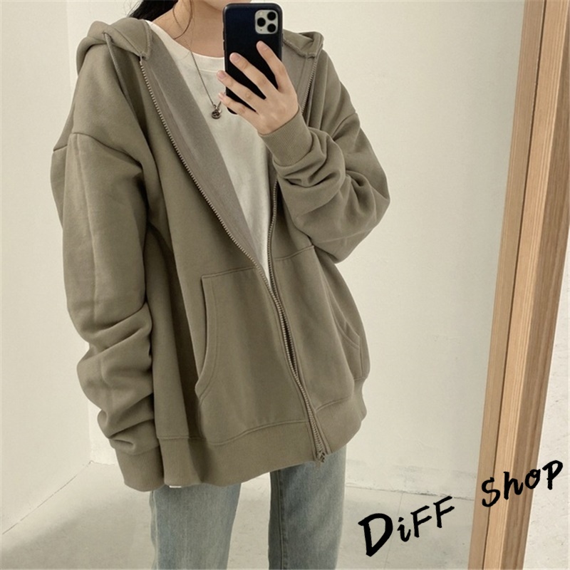 【DIFF】自訂款韓版經典運動連帽外套 運動外套 連帽外套 連帽上衣 衣服 女裝 冬天 長袖上衣 外套【J32】