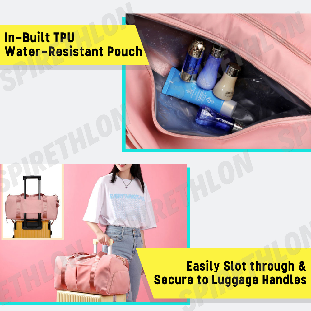 Colour:pink Really loved this bag when it came! Pretty spacious & decent looking, suitable for travel or gym bag. I liked the side shoes compartment.