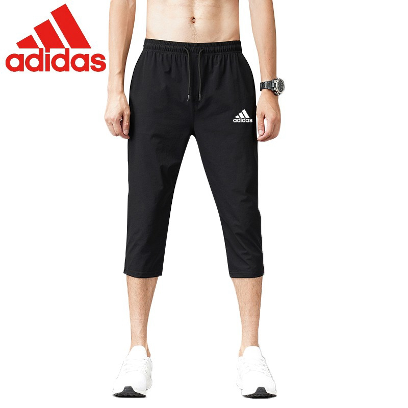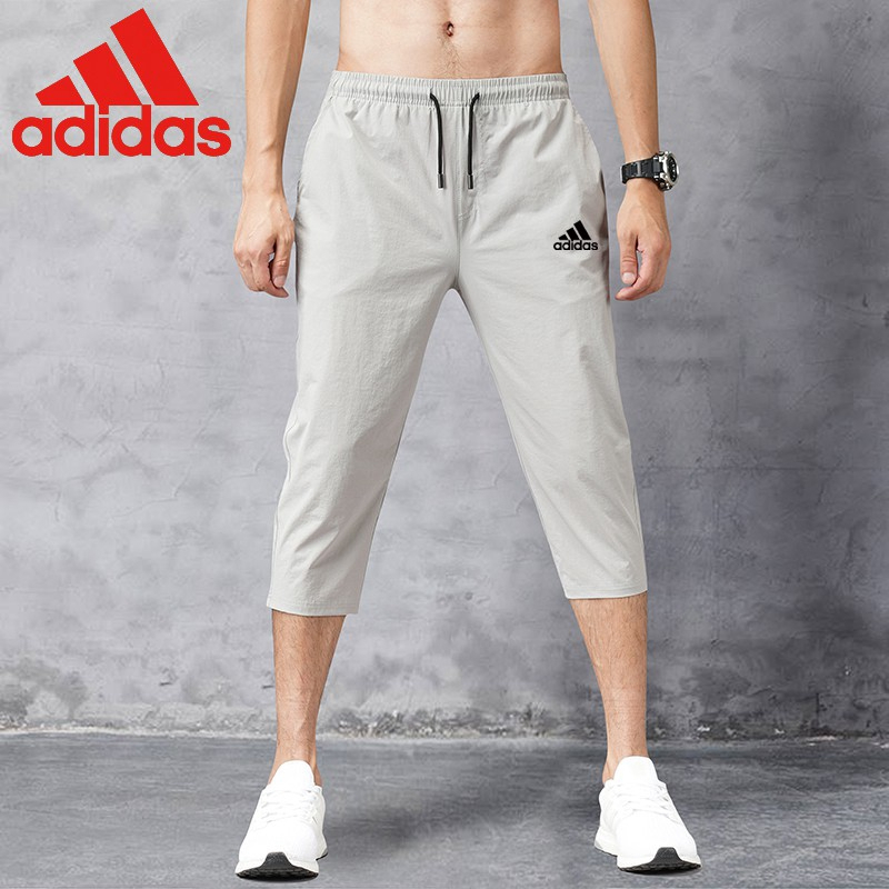 ! ️HOTSELLING! ️new solid color cropped trousers Capris men's casual pants with ice-like pants shorts