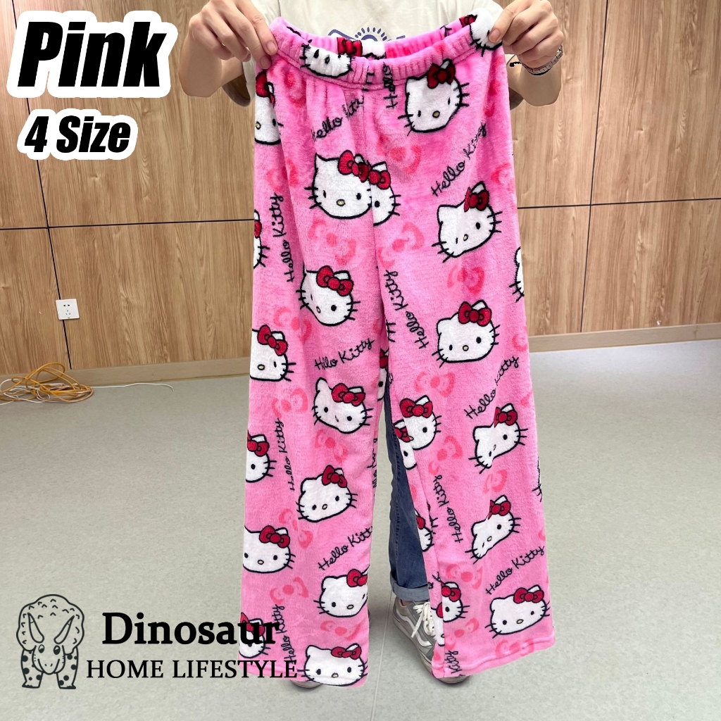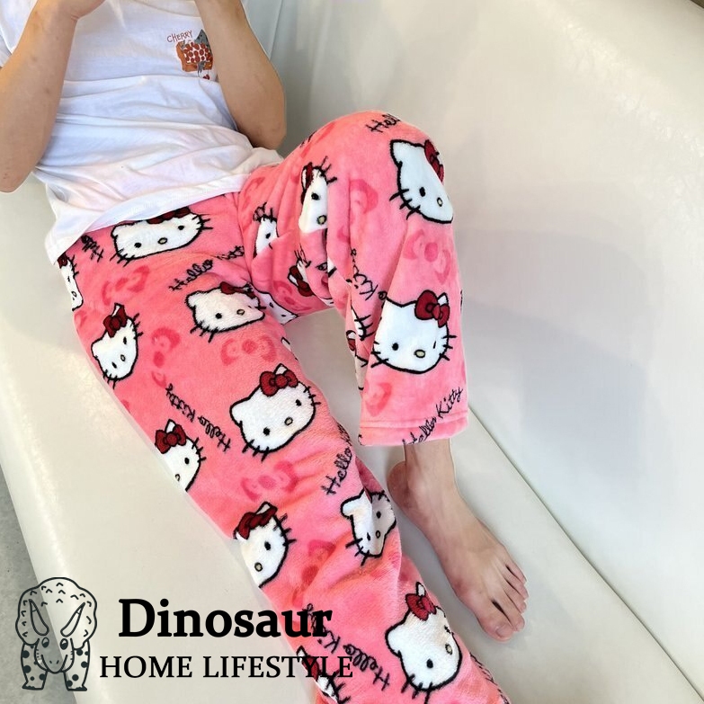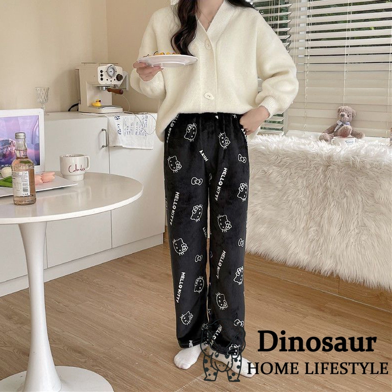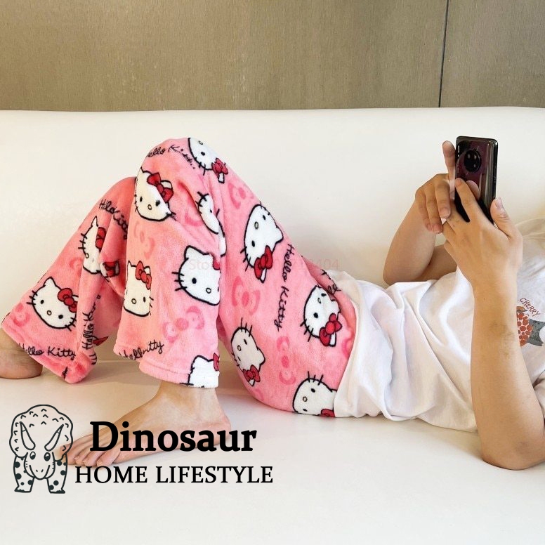 ?? ReadyStock - 2024 New Coral Fleece Hello Kitty Pajama Pants Women's Warm Plush Cartoon Casual Home Pants Student /Home pants / Pajamas pants