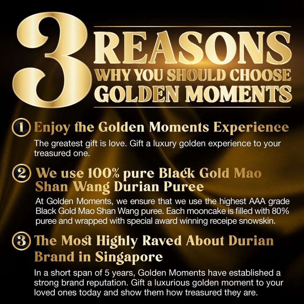[1 FOR 1] Premium MSW Durian Snowskin Mooncake (Box of 4) [Golden Moments] - Durian Mooncake, Mid-Autumn