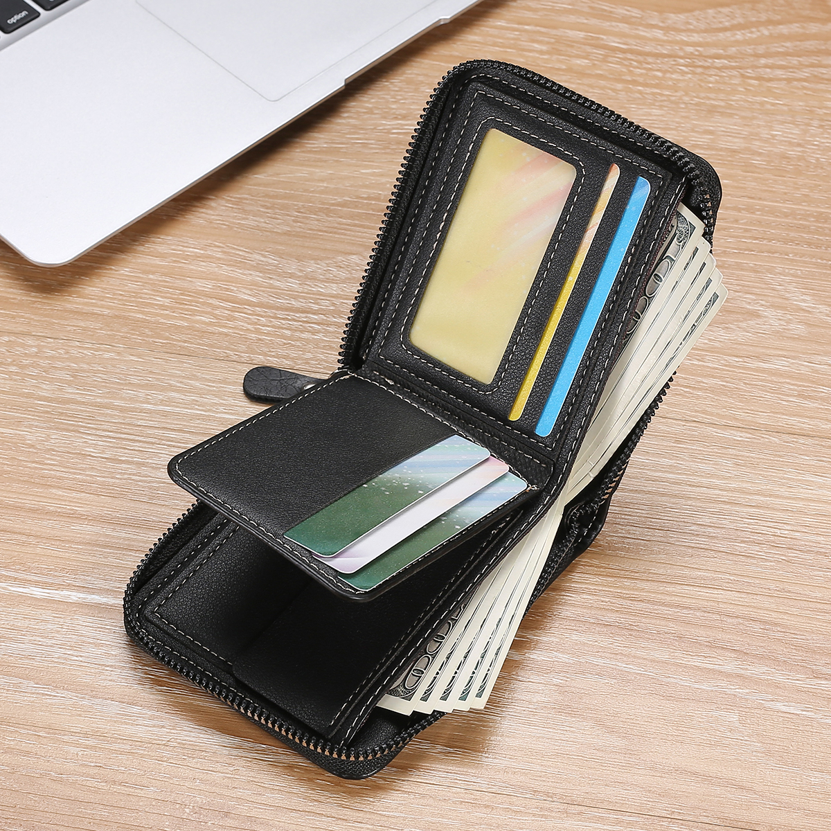 1 Piece Men's Business Zipper Short Wallet Youth Fashion Stitching Multifunctional Wallet Coin Pocket Coin Purse Boys Gifts