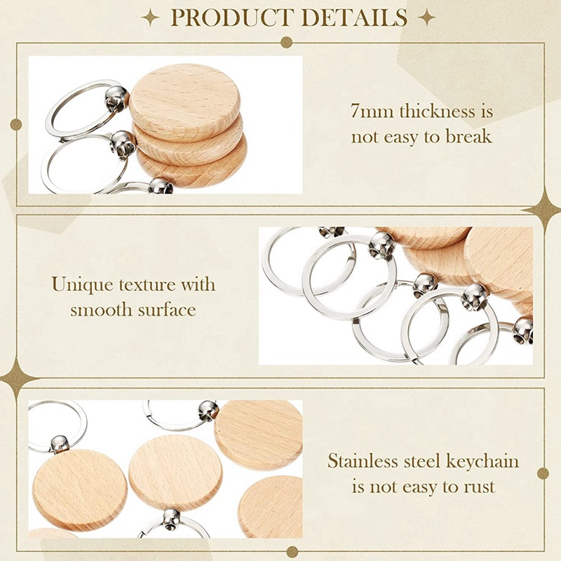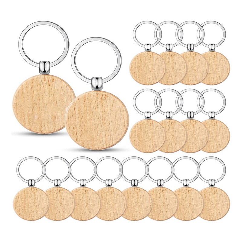 100 Pieces Wooden Keychain Blanks Round Wood Keychain Blanks Unfinished Wooden Key Ring Key Tag B