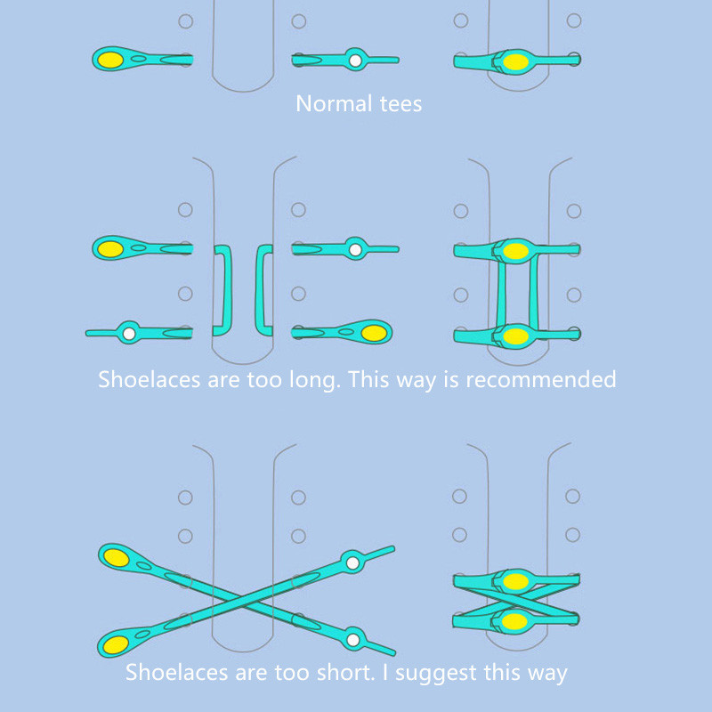 Material Quality:ok Colour:black and white Easy to use, universal fit and is tight. Better to get more due to wear and tear. Best buy no need to fiddle with shoelaces.