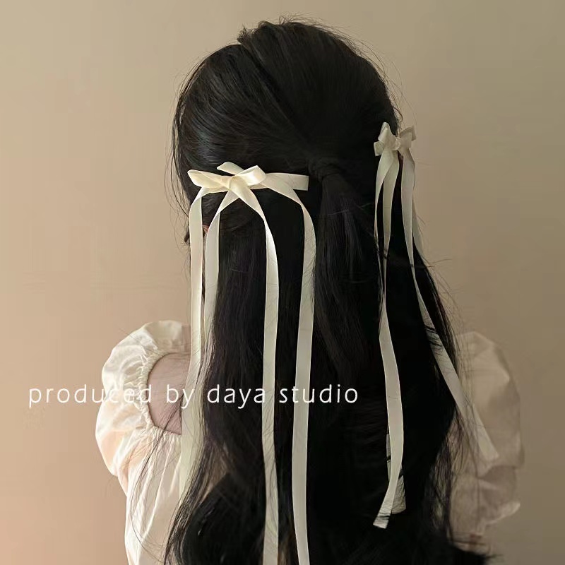 2023 New Style Bow Hair Clip Braided Hair Ribbon Tie Hair Clip Sweet Girl All-Match Streamer Bangs Clip Hair Accessories