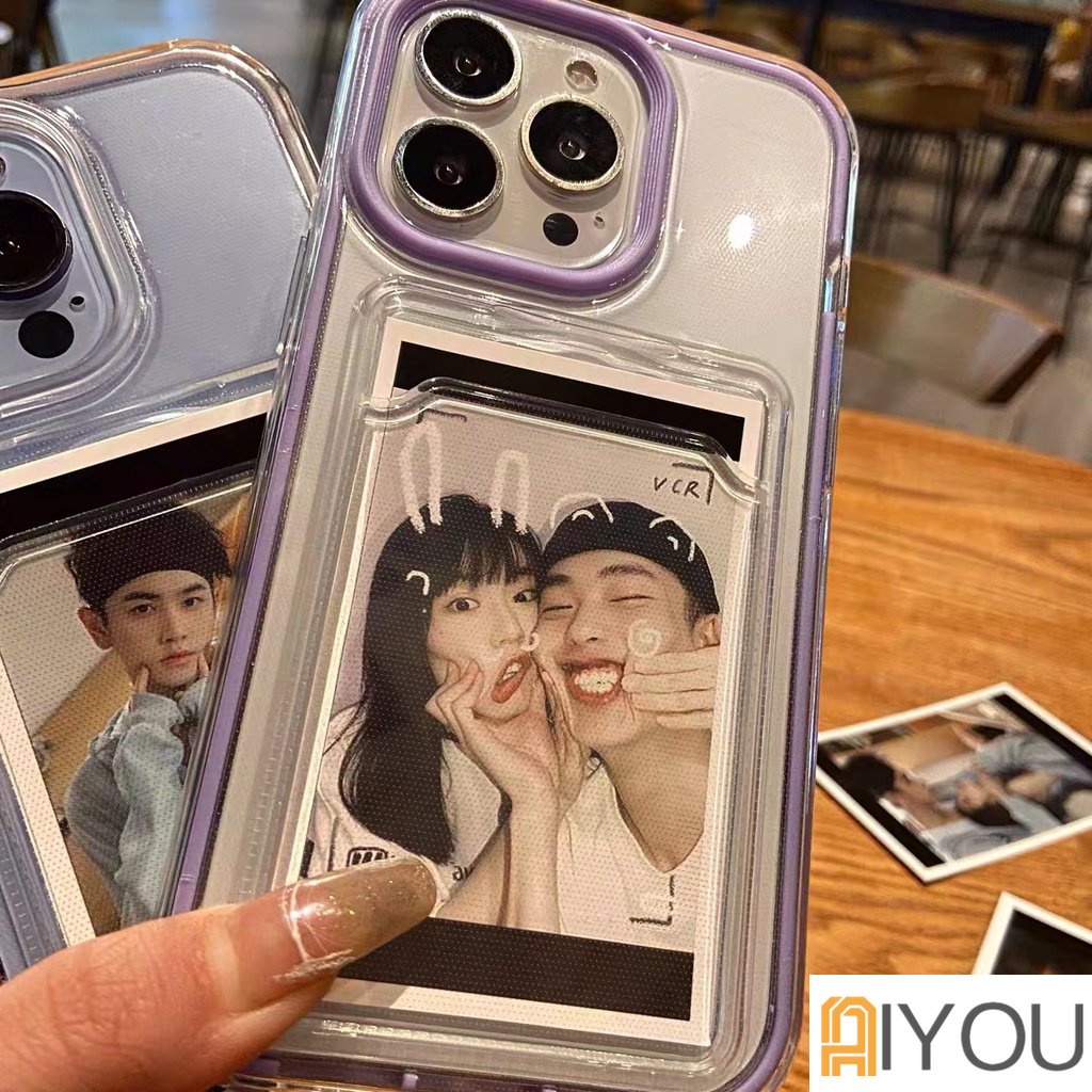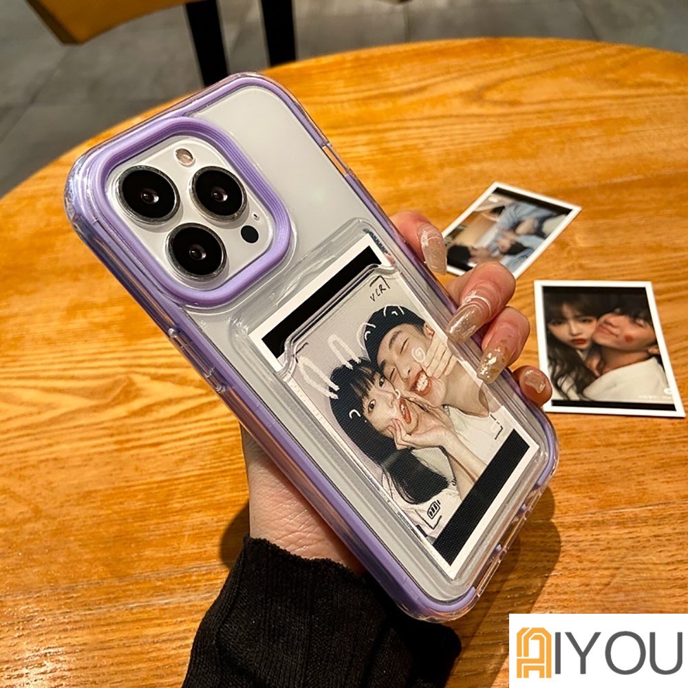 3 In 1 Luxury Candy Color Card Holder Removable Frame Clear Phone Case for IPhone 14 pro max 13 12 11 Pro Max X Xs Max Xr 8 7 Plus