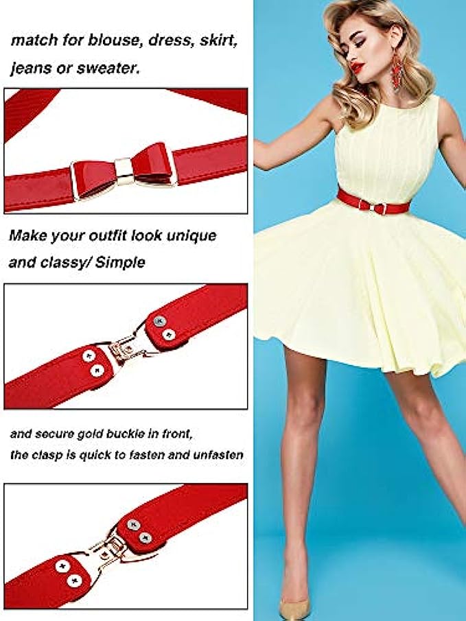 • Skinny belt: belt width is 0.8 inch/ 2 cm, and the decorative bow is 1.2 inches/ 3 cm wide, the skinny design makes the belt elegant and beautiful, which is a nice accessory for dress