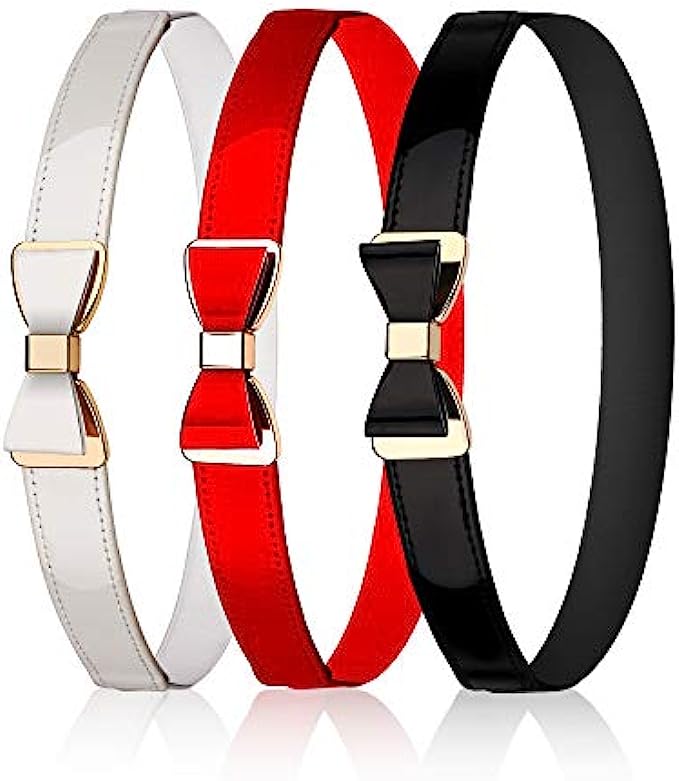 3 Pieces Women Skinny Waist Belt Thin Stretchy Bow Belt for Dress, 3 Colors (Set 1)