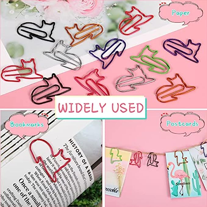 Cat Shaped Paper Clips: our paper clips adopt cat shape design in 6 vibrant colors, they look like curling up on the ground, funny and interesting, they can pin your documents, notes, bookmarks, receipts and more, let your small items organized
