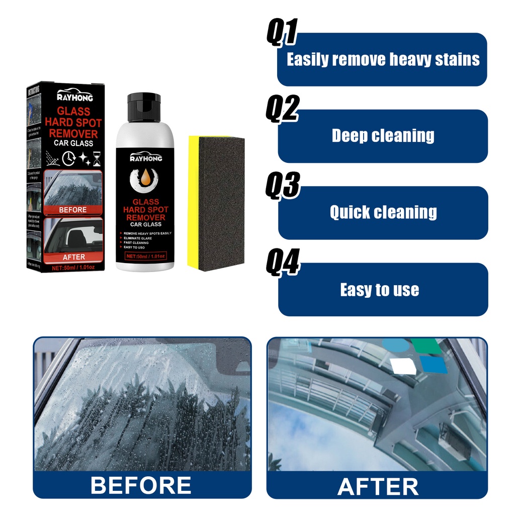 50g Anti-Fog Car Glass Oil Film Removing Paste with Sponge Glass Polishing Cleaner Stain Remover Universal Deep Cleaning Eliminate Water Spot for Auto Windshield Mirror Windows
