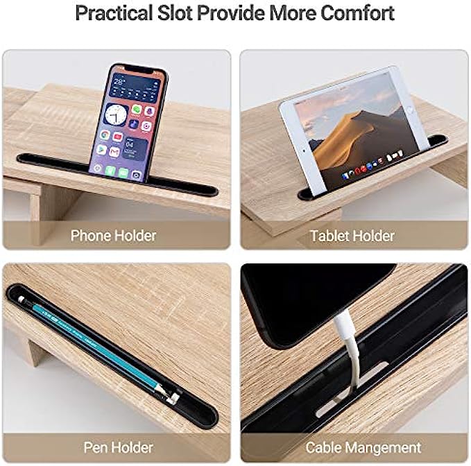 CARE YOUR BODY: As a ergonomic monitor riser stand, it could raise your computer monitor, tablet or laptop to an and keep screen at eye level and help you keeping a better posture, preventing stress cause by the long time work