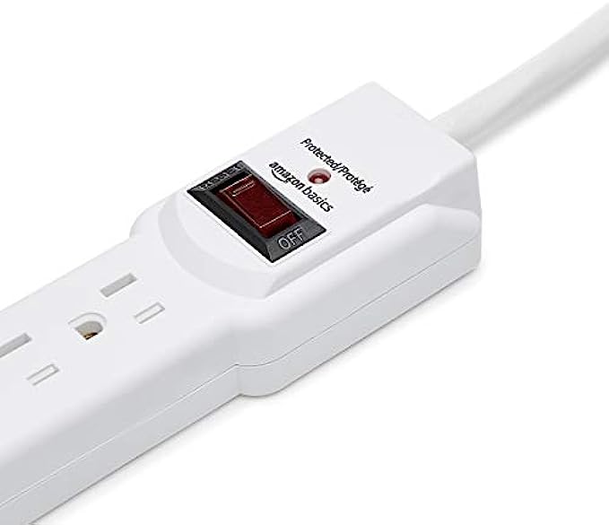 Amazon Basics 6-Outlet, 200 Joule Surge Protector Power Strip, 2 Foot, White - Pack of 2