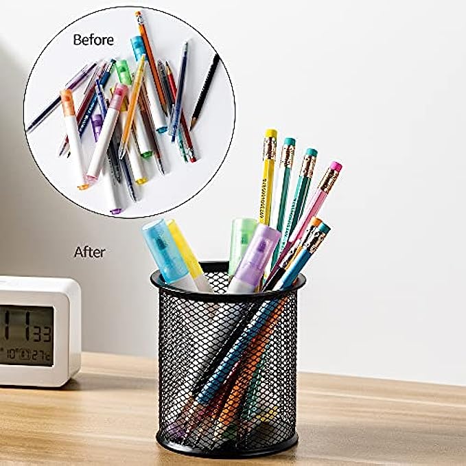 • Pencil cup ideal for hold writing utensils and office supplies such as pens, scissor, rulers, brushes, and more