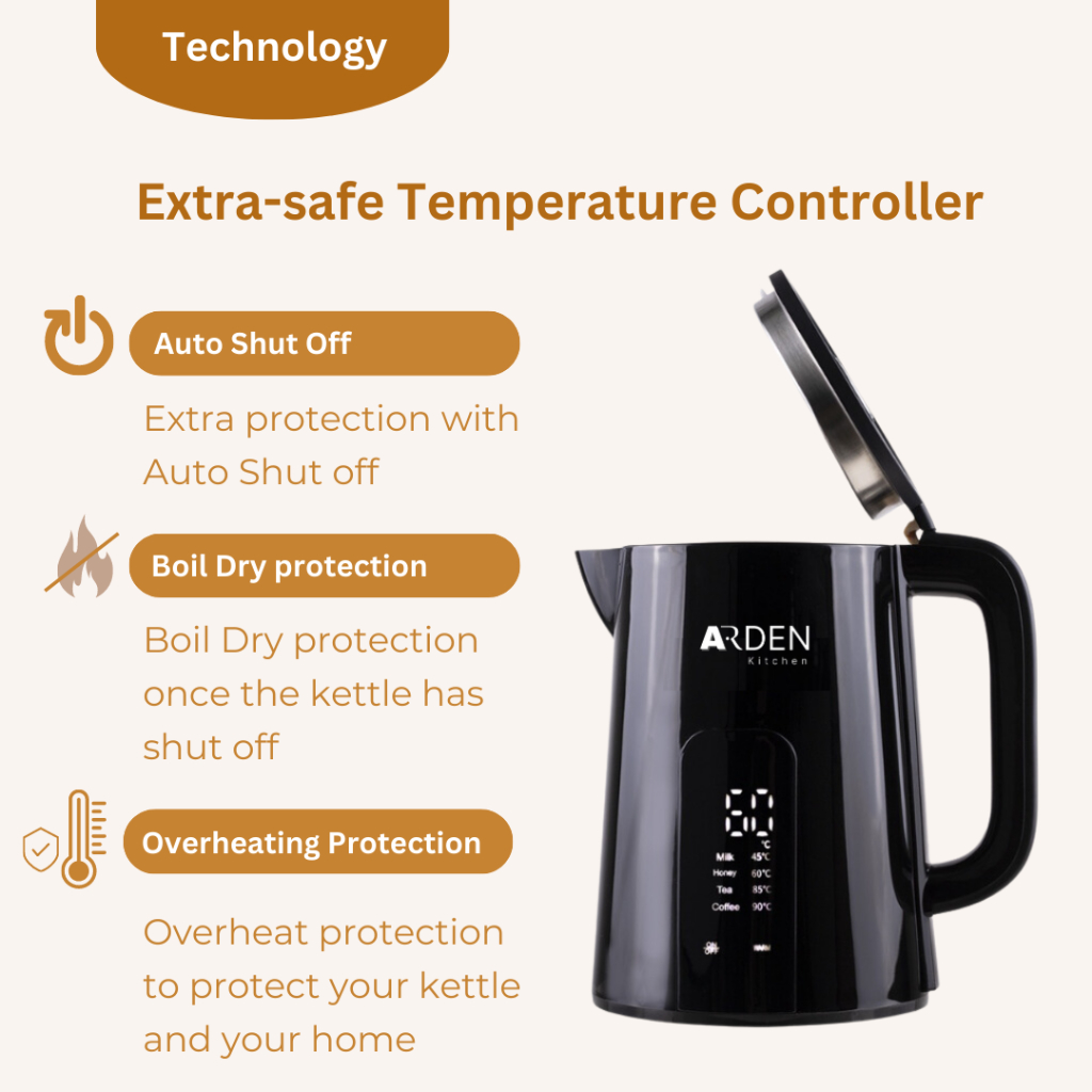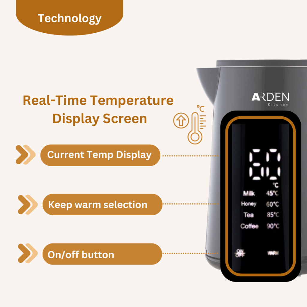 Arden Kitchen 1.7L Digitial Electric Kettle Real-Time Temperatre Screen Display