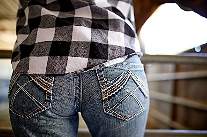 • MADE FOR COMFORT: These denim boot cut jeans are rider tested and thoughtfully engineered. The slim fitting style through the thigh features a boot cut design and performance stretch denim for added comfort that holds its shape and flatters yours.