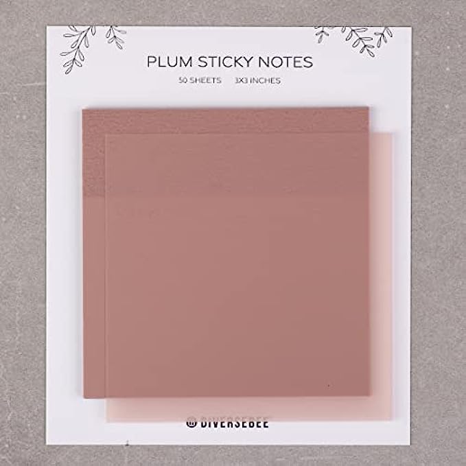DiverseBee 50 Sheets Pastel Transparent Sticky Notes, 3x3” Clear Sticky Tabs, Translucent Page Flags Book Markers Stickers, Planner Accessories, Bible Journaling Study Office School Supplies (Plum)
