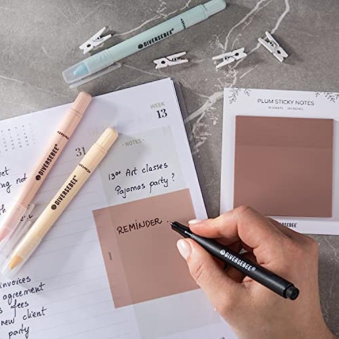 • 50 Pastel Sticky Notes: these ideal sized 3x3” sticky notes are suitable for writing with oil based markers, ballpoint pens, pencils. Not suggested for highlighters or water-based pens, because it may take a long time for them to dry.