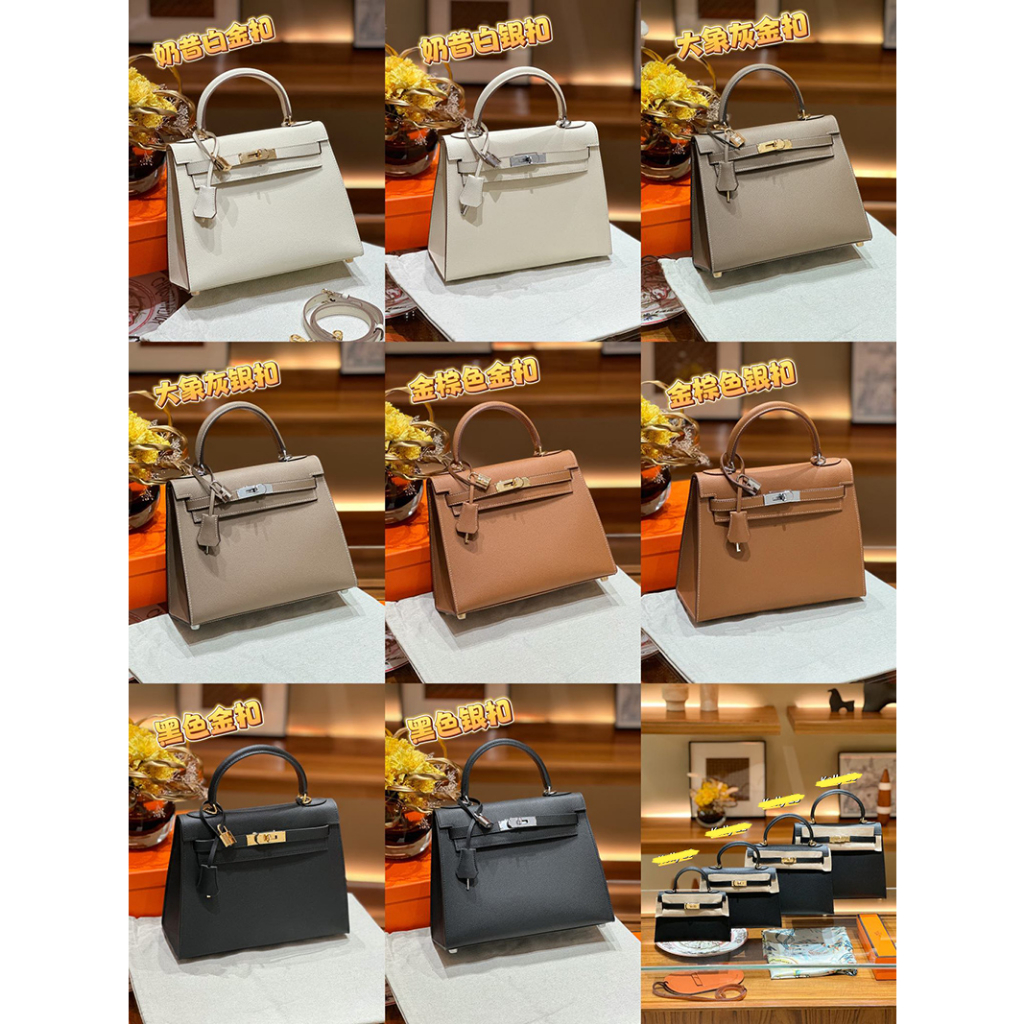 Donnain Handmade Stitching Luxury Epsom Calfskin Genuine Leather Women Desginer Handbags for Office Lady Fashion Gold Hardware Lock Closure 28CM