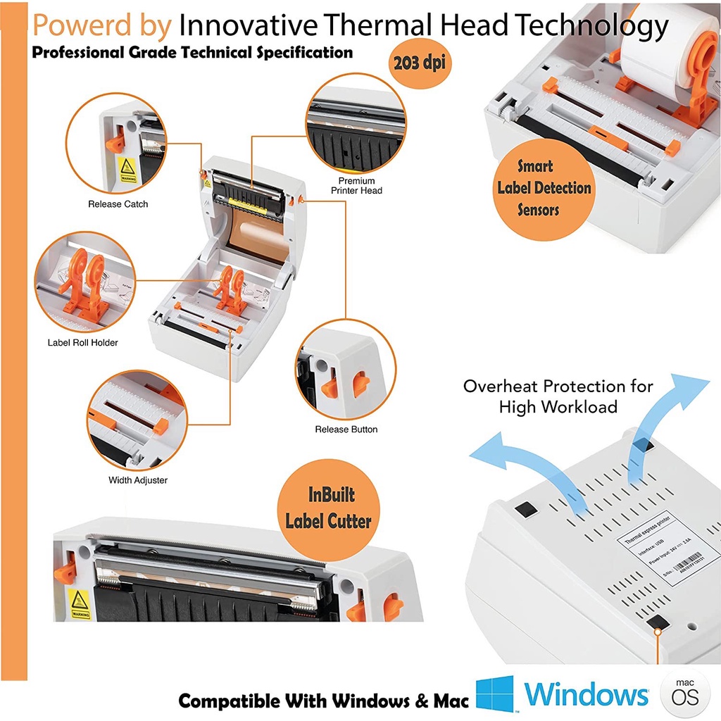 Easylabeltech USB /Bluetooth /WiFi Thermal Printer for Waybill Barcode Label Print