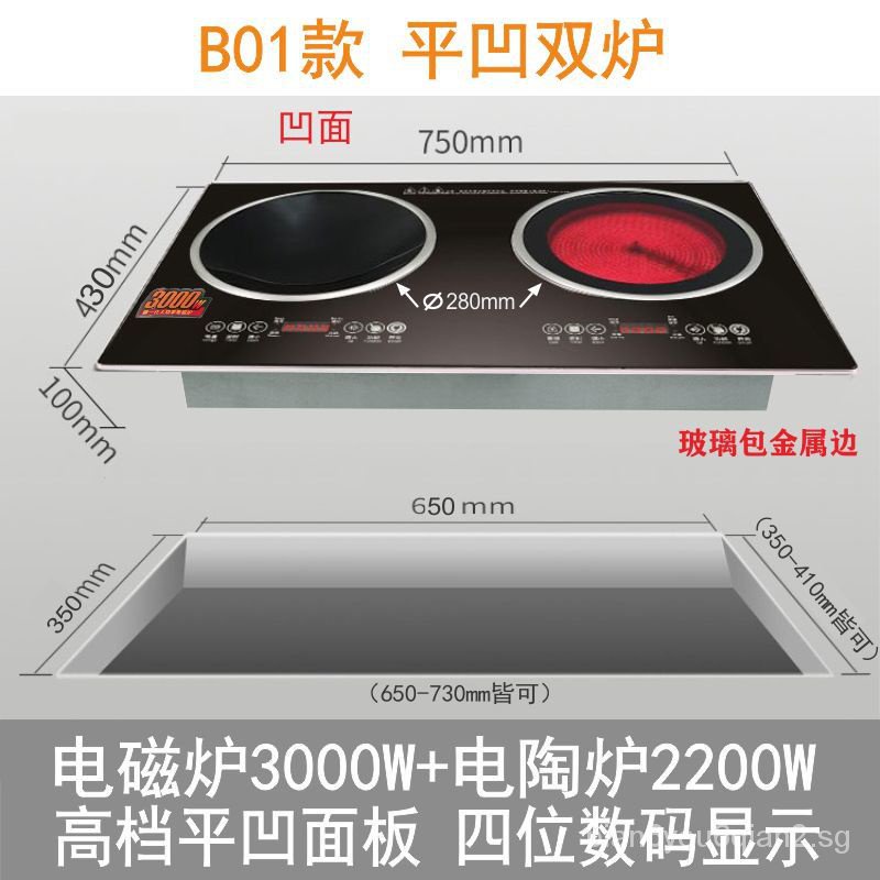 Embedded induction cooker double stove concave household stir-frying flat electric ceramic stove soup-magnetic-ceramic double-head electric stove