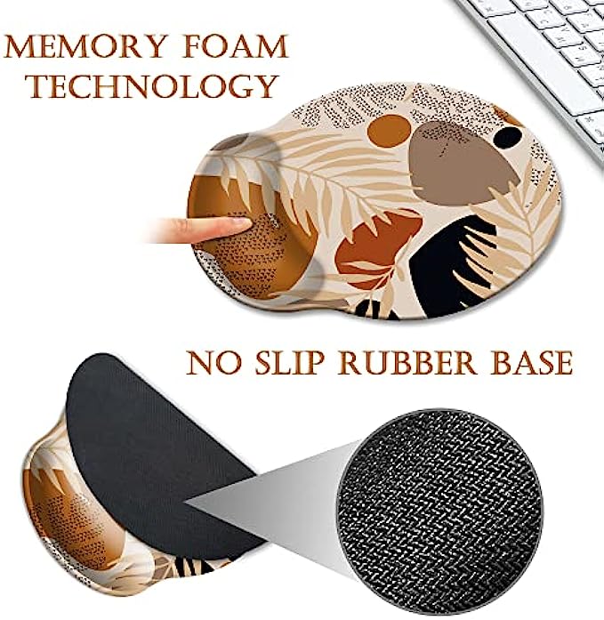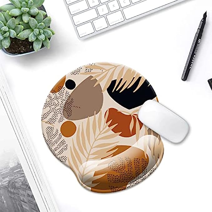 HOPONY Ergonomic Mouse Pad with Wrist Support Gel Mouse Pad with Wrist Rest, Comfortable Computer Mouse Pad for Laptop, Pain Relief Mousepad with Non-Slip Rubber Base, 9 x 10 in,Abstract Plants
