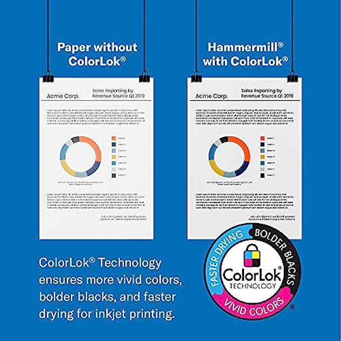 COLORLOK TECHNOLOGY INCLUDED - Colors on Hammermill copy paper are 30% brighter; blacks are up to 60% bolder and inks dry 3 times faster for less smearing. Acid-free Hammermill paper ensures long-lasting archival quality