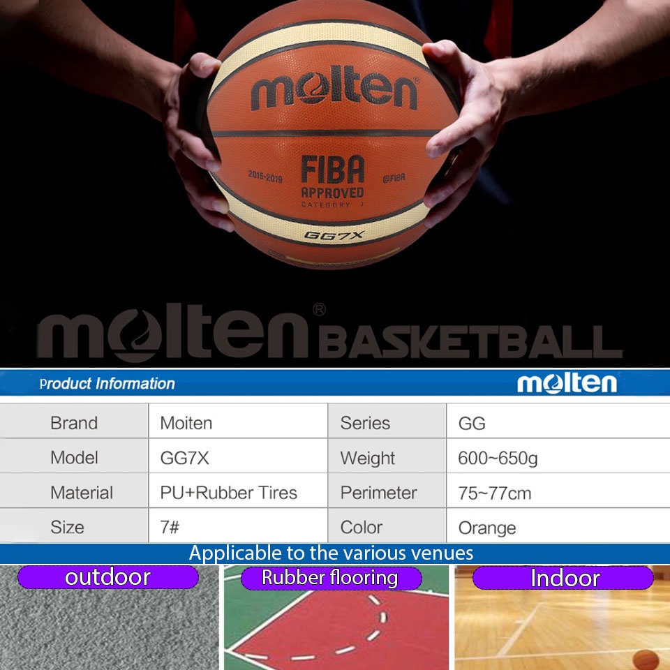 MOLTEN Basketball FIBA GG7X Size 7 Indoor Outdoor Basketball Court Training Ball