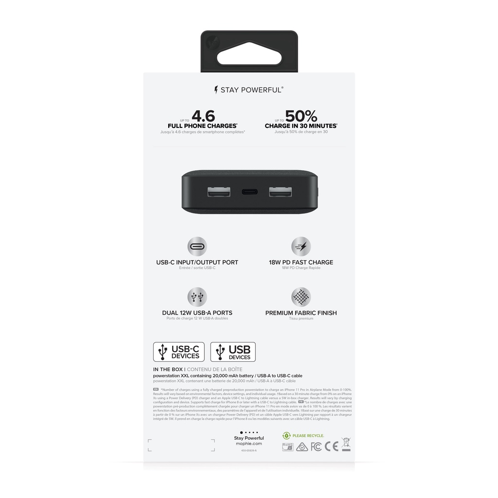 Mophie Powerstation 20K mAH with PD Fast Charge for Smartphone and Tablet | 2 Years Warranty