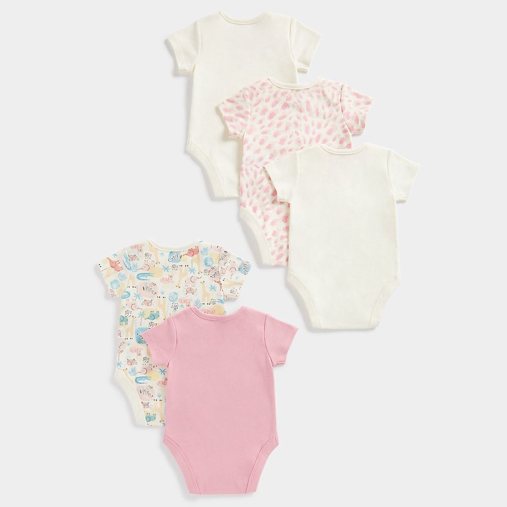 Mothercare Baby Girl Safari Short Sleeve Bodysuit -5 Pack