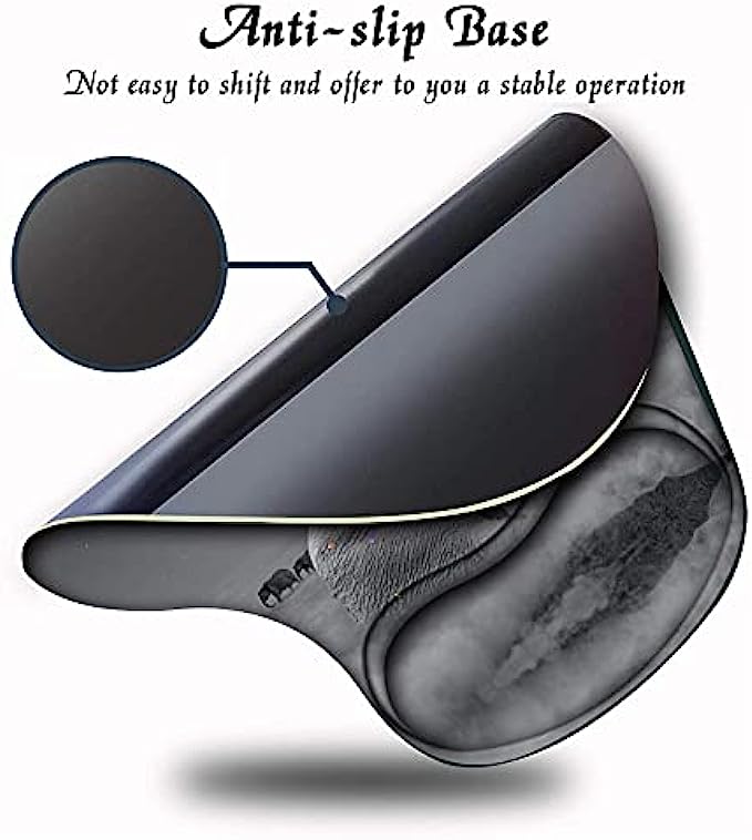 【Non-slip PU Base】 Mouse Pad with wrist support gel adopts PU backing, providing a firmly grasp on desktop to prevent sliding. Soft and will not move often when use the cute mousepad. offers a more pleasant experience while working or gaming.
