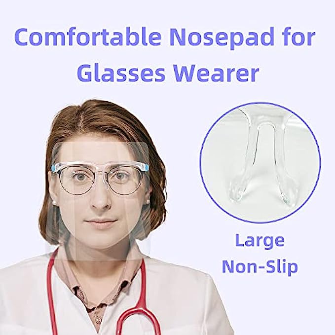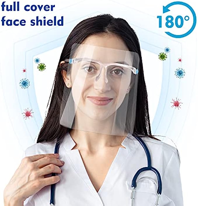 • Anti-fog protective full face shield: Safety face shield lightweight & comfortable, The face shield with glasses over glasses have 180 degrees of full-face protection which effectively isolate saliva, spray, splatter, droplet, dust, oil and smoke and so on.