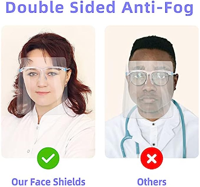 • Clear face shield for adults: Adult anti fog face shield for women and men. Lightweight and portable ,keeping these anti fog face shield mask in your backpack, home, workplace or car so that you can use plastic face shield mask outdoors, kitchen and office to protect your health anytime.