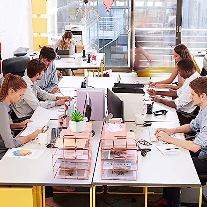 • ▶Multifunctional Office Tray- This rose gold desk organizer includes four file trays and one upper display shelf plus a box of binder clips. Large enough to handle daily-used files, papers, letters, files, folders, mail and much more.
