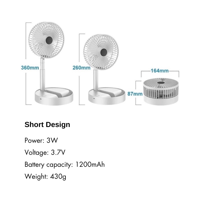 Portable Folding Fan Foldable Height Adjustable Tripod 7200mAh Mini USB Rechargeable Operated Fan