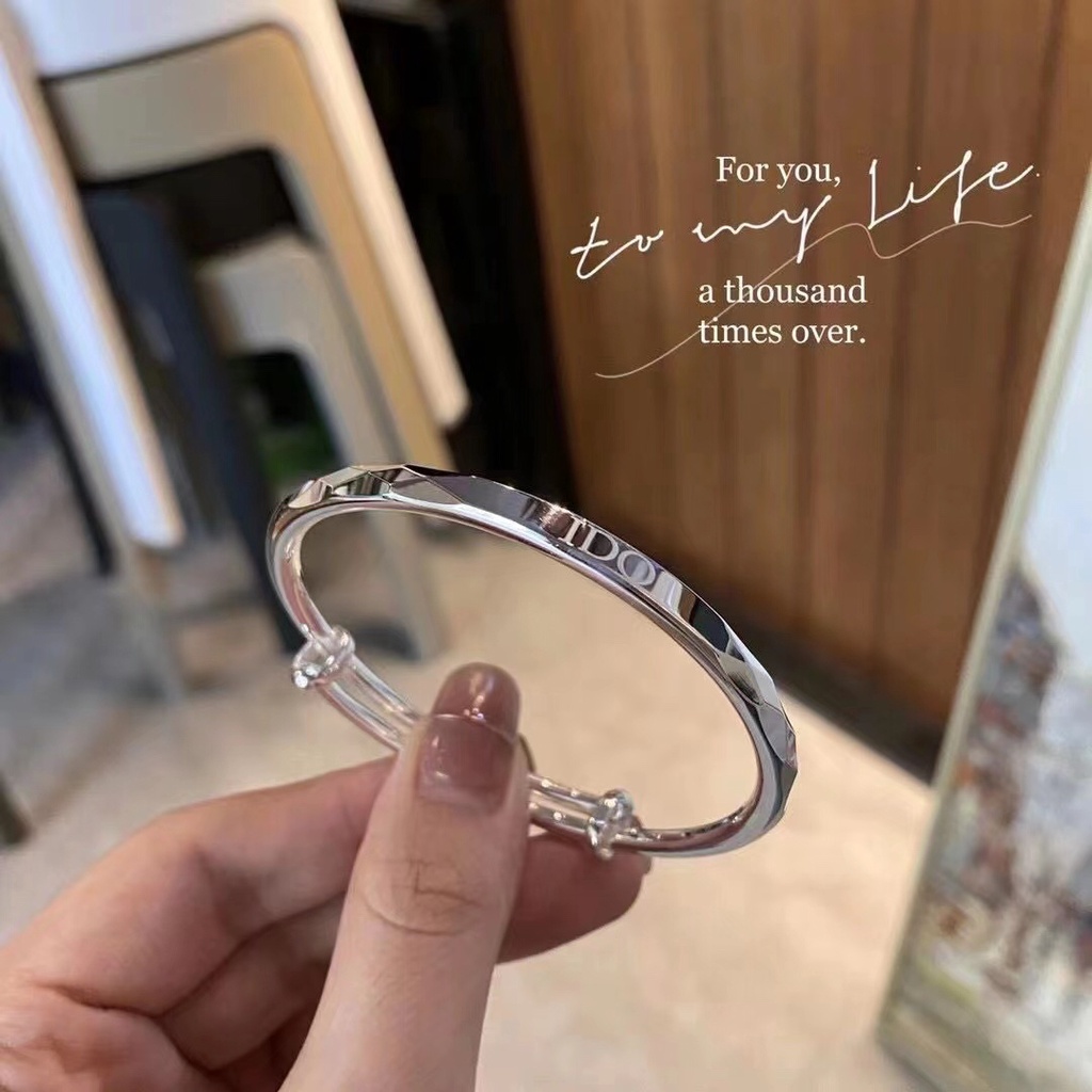 Round Stick Laser IDO Sliding Pull Bracelet Pure Silver 999 Shiny Surface