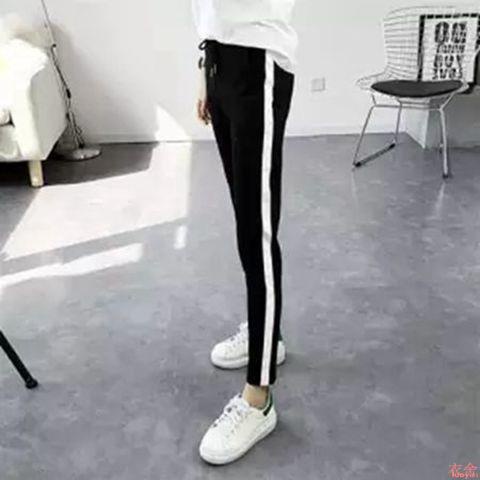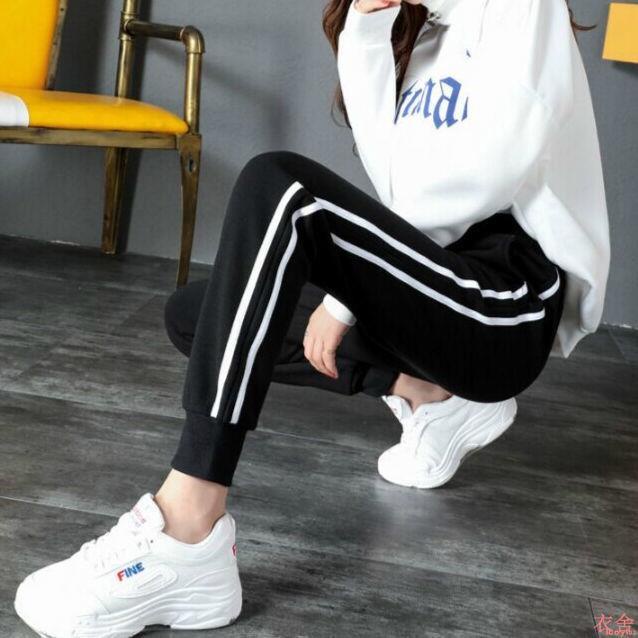 S-5XL 三線運動縮口褲運動褲 修身小腳褲 休閒百搭 窄腳 休閒長褲 大尺碼長褲 大碼運動褲 運動褲女