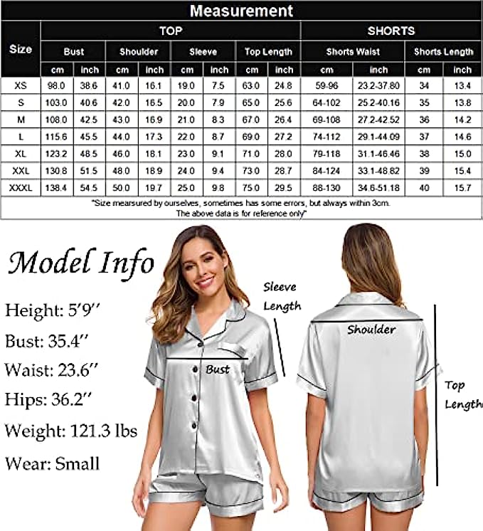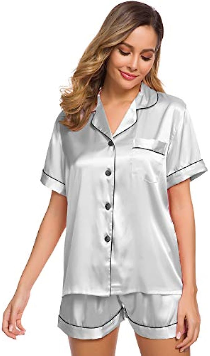 • Occasion:Women's Short Sleeve Silk Satin Pajamas Set, which is suitable for daily wearing and easy to match.Comfortable and suitable for lounging and sleeping,pajama party,girls day,bridal sleepwear,indoor, living room, bedroom, hotel, vocation, travel, and daily sleepwear.