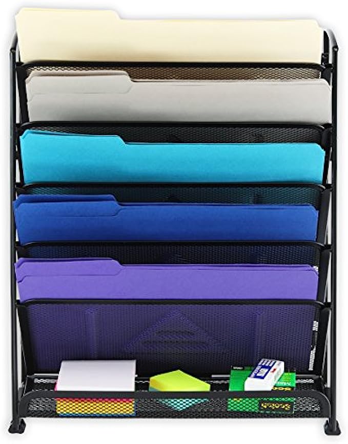 • Top 5 tilted trays for easy accessing documents, the very bottom flat tray is great for stationary, desk accessories