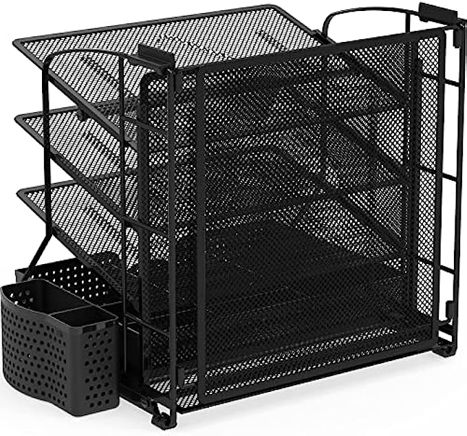 SimpleHouseware Desktop Document Tray Organizer with Sliding Drawer/Caddy/Hanging File Section, Black