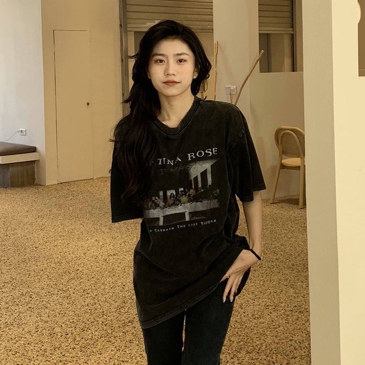 TGNS 水洗做舊 短袖 T恤 短袖上衣 美式復古 ins風 oversize 寬鬆 短t 夏天衣服 衣服女