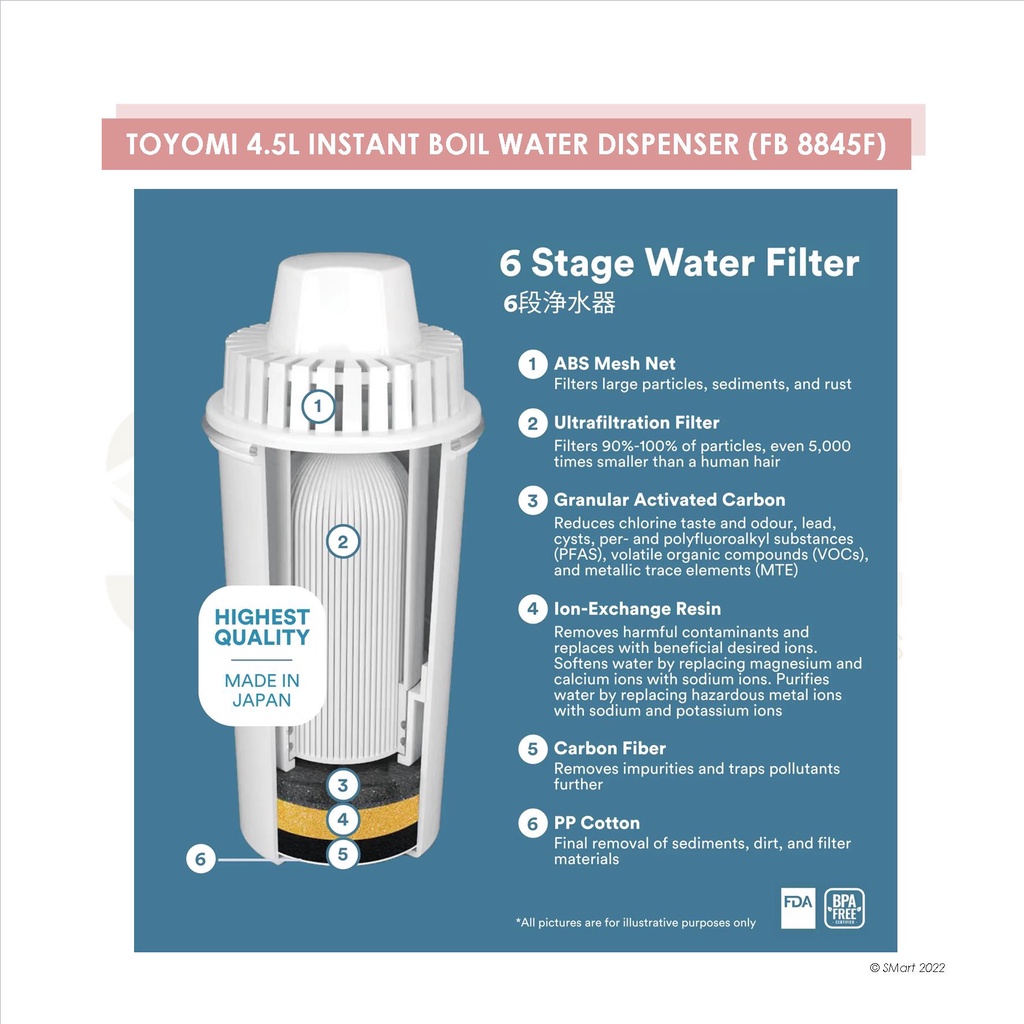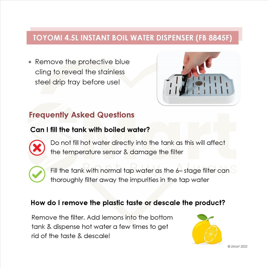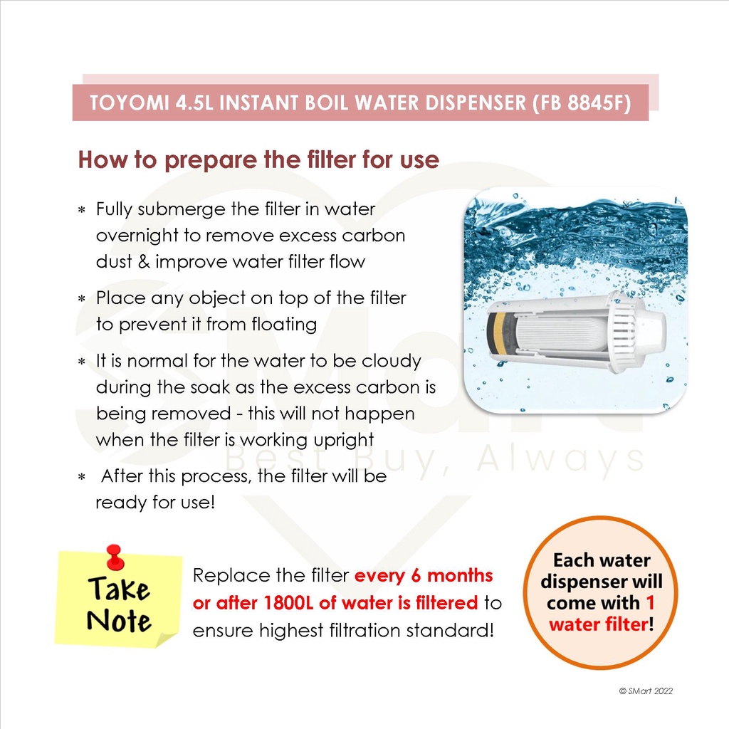 Toyomi 4.5L Instant Boil Filtered Water Dispenser [FB 8845F]