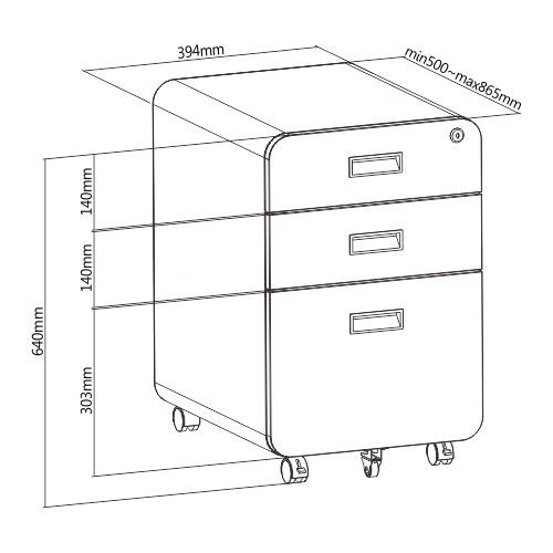 ULTi Vulcan 3-Drawer Mobile Steel Vault Storage Drawer File Cabinet - Made for Standing Desk