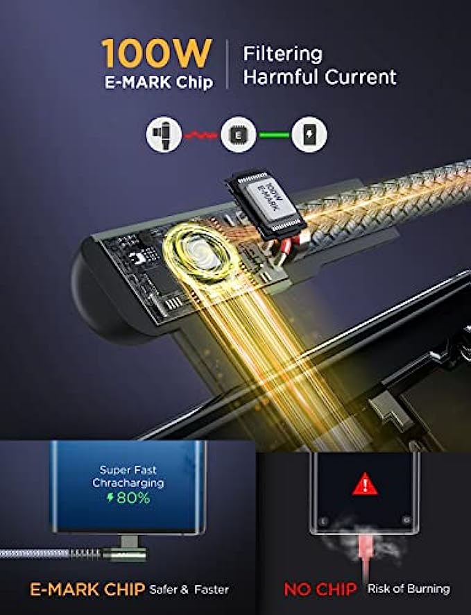 • ?2022 Upgrade 100W E-Mark Chip, 6X Faster : 100W super fast charging usb c cable to usb c is built in the best power delivery Certified E-Mark dual chip, which turbo charge supports USB PD fast charging and provides comprehensive protection to devices battery and adapters, keeping you in light-speed charging and safe. AINOPE is born for safe and fast charging. Please note: This 100W USB C cable data transfer needs to pass through the USB 2.0 USB C port.
