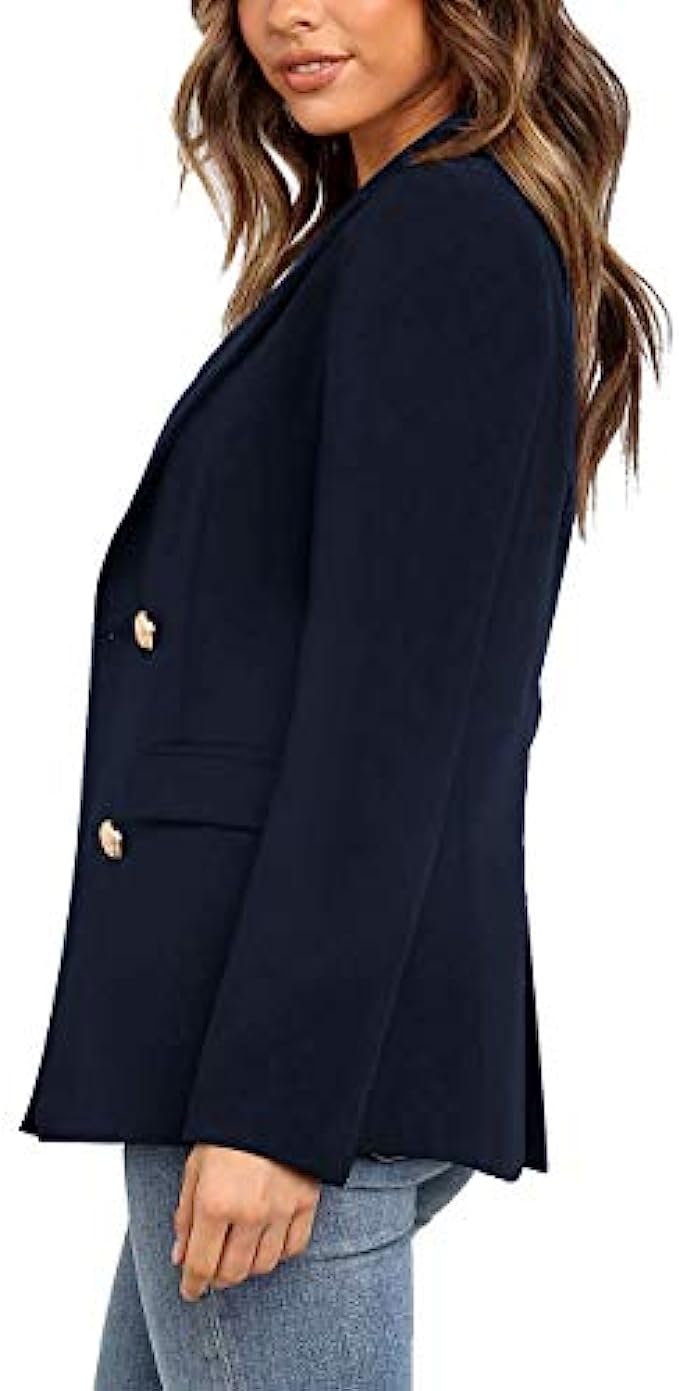 Utyful Women’s Casual Notched Lapel Double Breasted Button Work Office Blazer Jacket