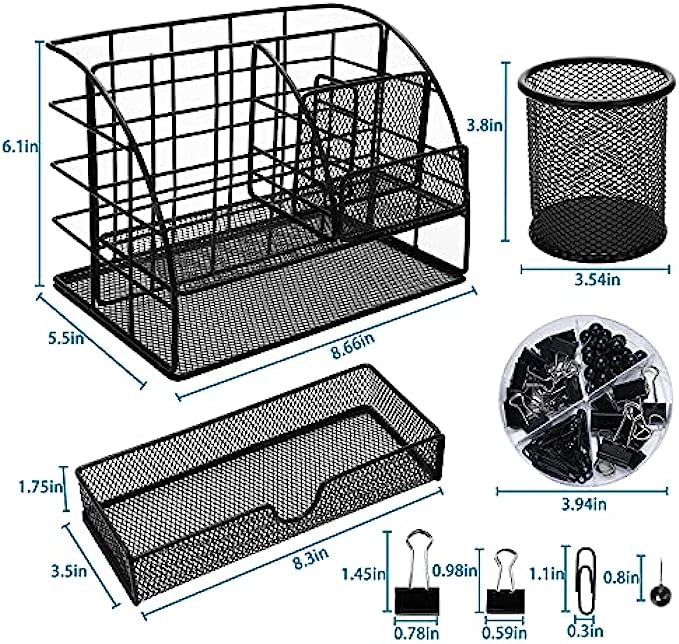 • ✏️Desktop Space Saver: The office desk organizers offers enough storage space to hold all your desktop items such as folders, pens, sticky notes, rulers, business cards, etc. It is also great for organizing cosmetics and small household items so you can stay organized and find anything you need right when you need it.