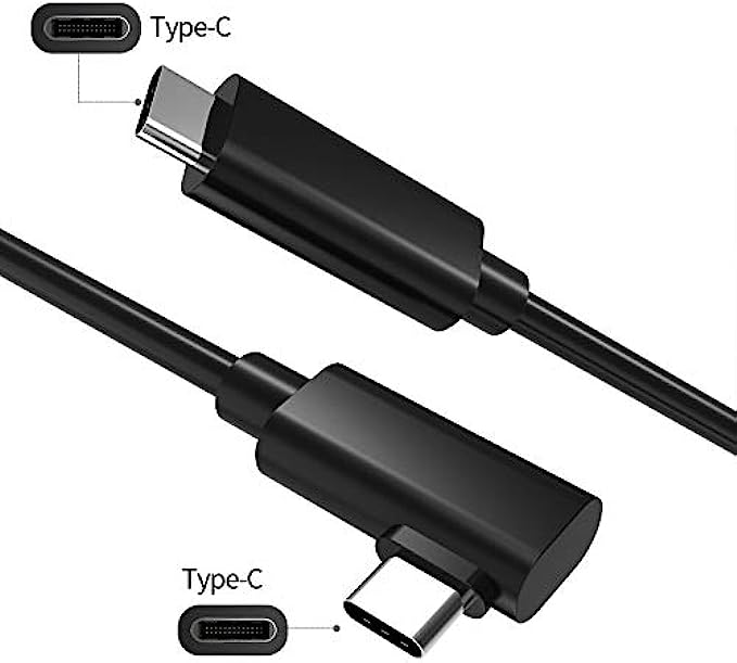 VR Streaming Link Cable Compatible for Oculus Quest, Cuxnoo Virtual Reality Headset Cable Angle USB 3.2 Gen1 C-C High-Speed Data Transfer, Fast Charging Cord, 15FT