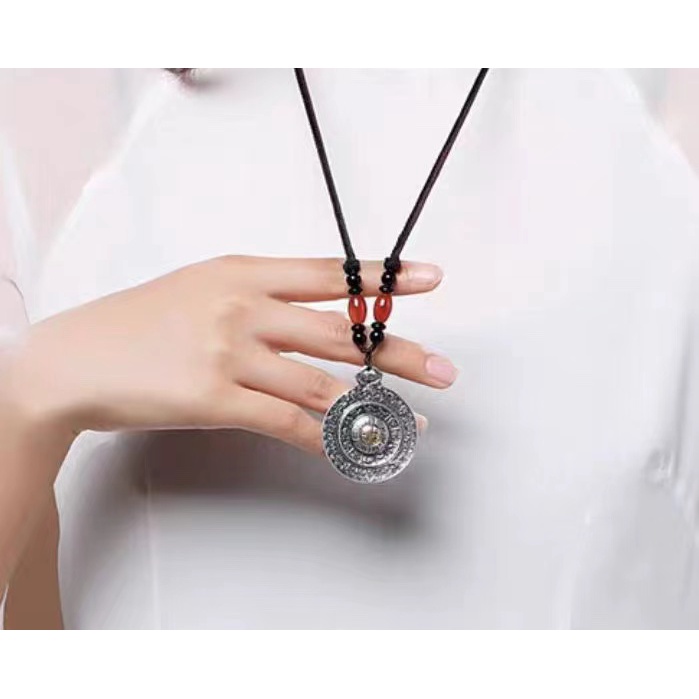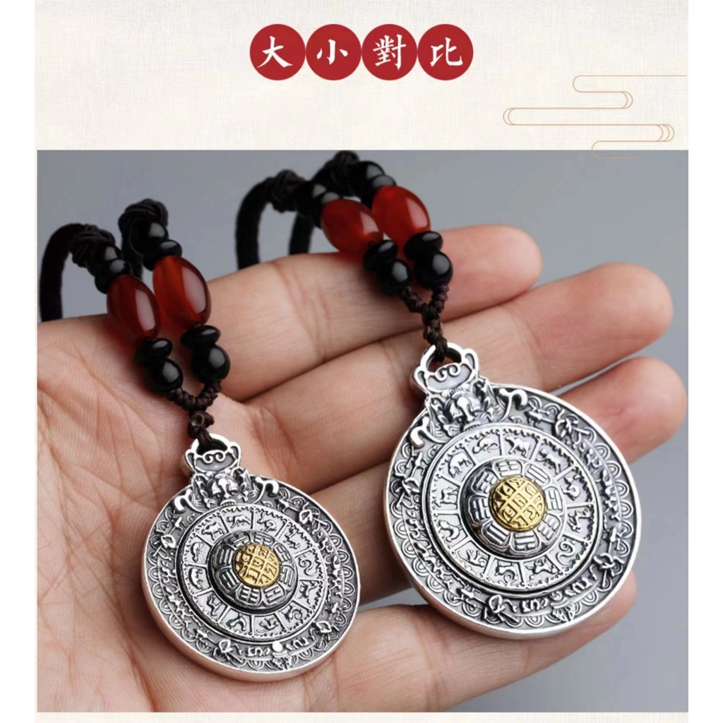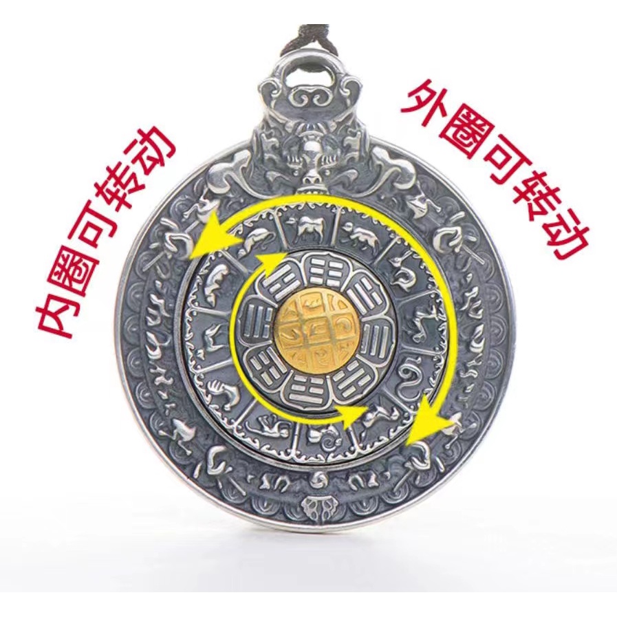 Vintage Jiugongge Pendant Rotatable Pure Silver 999 Sterling Couple