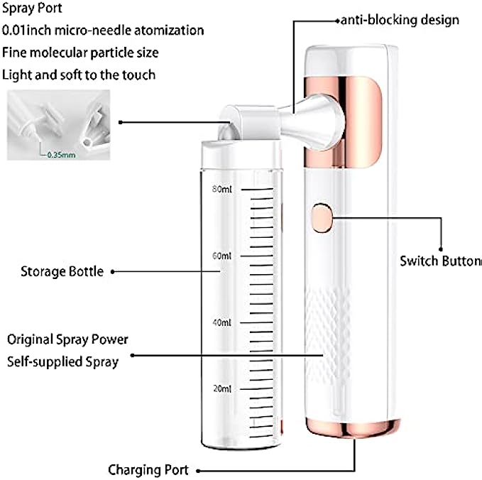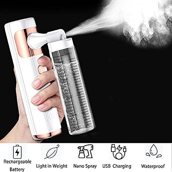 • [Important Note] Do not put the nano spray upside down during use to prevent the liquid from leaking out through the air holes at the nozzle.After use, please discard the remaining liquid and clean the equipment. If you have any questions, you can contact us and we will give you the best service.